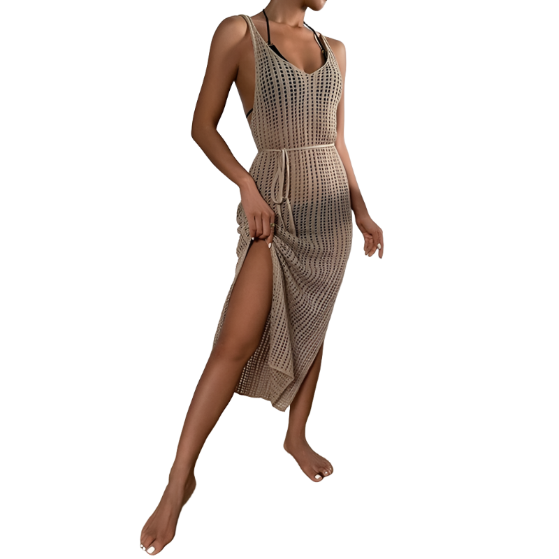 Avah Hollow Sleeveless Transparent Belted Bikini Cover-Up