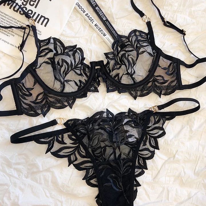 Christina Lace Ultra-Thin Embroidery Bra and Panty Set