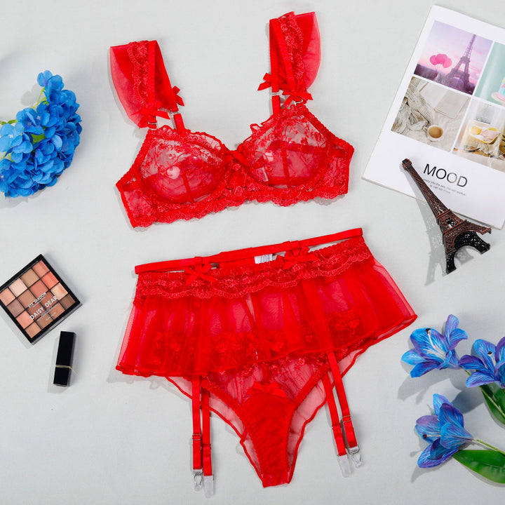 Darcy Fairy Lace Bra and Panty Set with Suspender