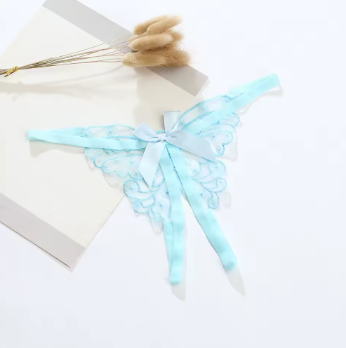 Lila Lace Open Crotch T-back Bow Panty