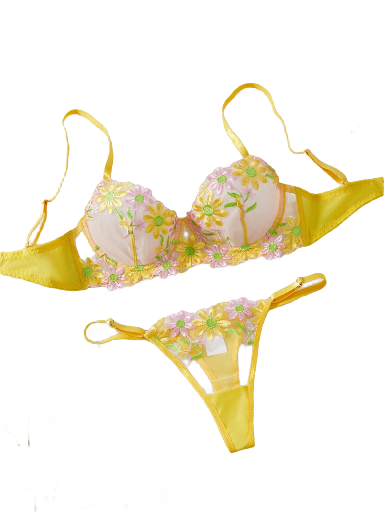 Designed with delicate floral lace, this exquisite set offers a dreamy, romantic look with just the right touch of allure.