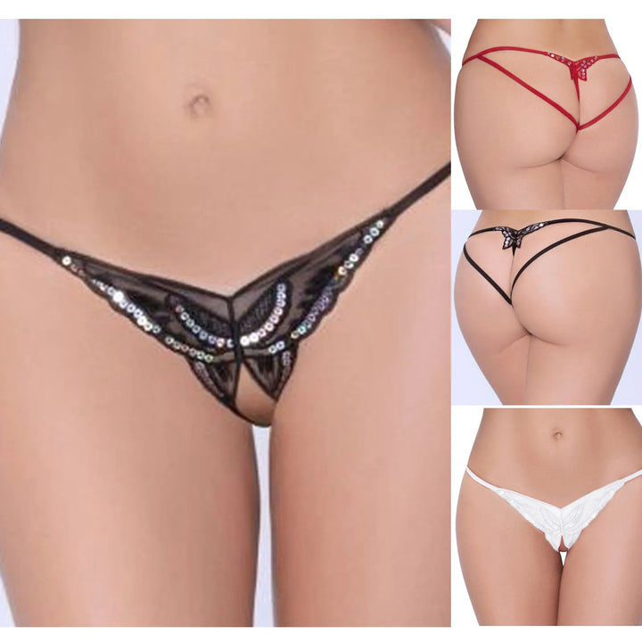 Featuring exquisite sequin embroidery and an enticing open crotch design, this panty blends glamour with confidence.