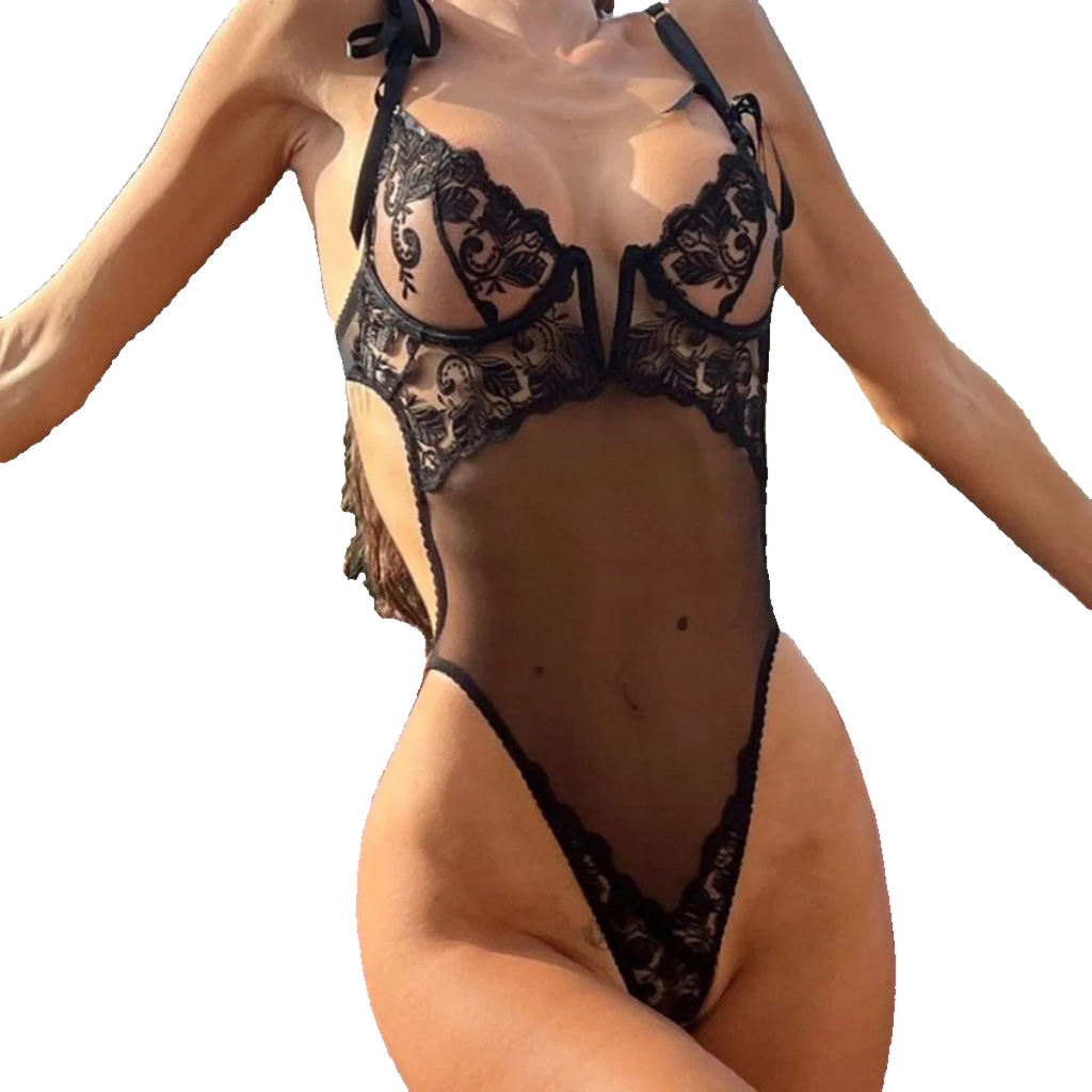 The plunging neckline adds a touch of drama, while the sheer fabric creates a tantalizing allure. Perfect for a romantic evening or a special occasion, this bodysuit is sure to turn heads and ignite passion.