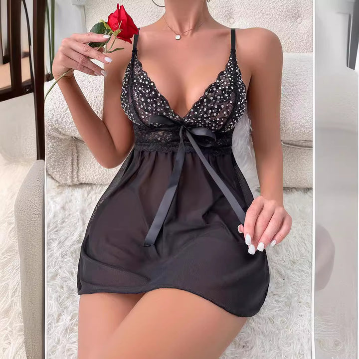 The sheer lace provides a tantalizing glimpse of skin, while the bowknot accentuates the romantic aesthetic.